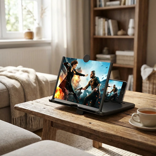 Designed to magnify your mobile screen up to 3–5 times, this smart and portable screen enlarger gives you a cinema-like viewing experience anytime, anywhere — without using electricity, batteries, or apps.